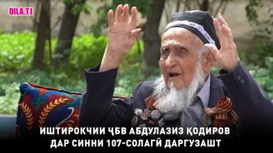 МИҲД-и ноҳияи Шаҳринав аз даргузашти иштирокчии Ҷанги Бузурги Ватанӣ Абдулазиз Қодиров хабар дод. Номбурда дирӯз, 25-уми феврал дар синни 107-солагӣ аз олам даргузаштааст.