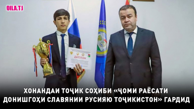 Хонандаи синфи 11-и Муассисаи давлатии таълимии «Литсей барои хонандагони болаёқат» дар шаҳри Душанбе Сино Шаропов ғолиби Озмуни ҷумҳуриявии зеҳнӣ барои дарёфти «Ҷоми Раёсати Донишгоҳи славянии Русияю Тоҷикистон» гардид.