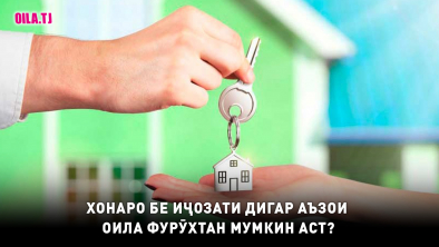 - Албатта шумо ҳамчун соҳибмулк метавонед манзилатонро, ки моликияти шахсии шумо ба ҳисоб меравад, фурӯшед, вале ҳангоми бастани шартномаи хариду фурӯш, барои фаҳмидани мавҷуд набудани баҳс вобаста ба манзили мазкур, розигии ҳамсаратон ва дигар аъзои болиғи оила дар Идораи нотариалии давлатӣ гирифта мешавад.