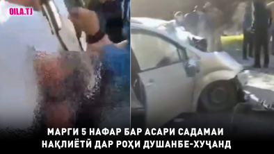 Дирӯз, 24-уми феврал дар шоҳроҳи Душанбе-Хуҷанд садамаи нақлиётӣ сар зада, бар асари ин ҳодисаи нохуш 5 нафар ба ҳалокат расиданд. Дар ин бора Вазорати корҳои дохилӣ хабар додааст.