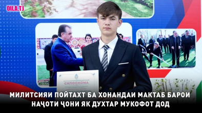 Милитсияи пойтахт ин рафтори хонандаи синфи 10-ро намудаи далерию шуҷоатмандӣ хонда, ба волидайн ва устодонаш барои таълиму тарбияи шоистаи наврас изҳори сипос намудааст.