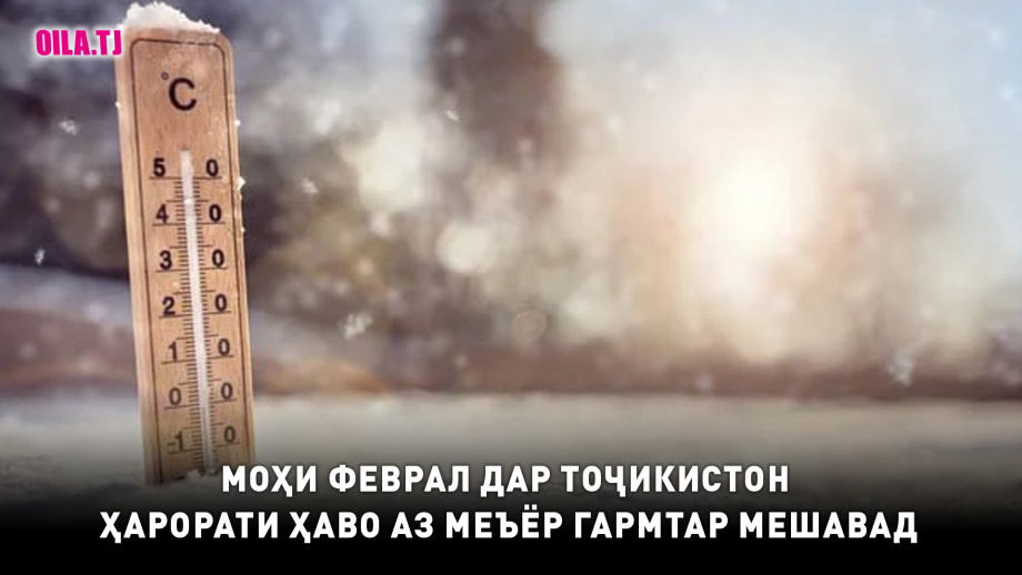 Агентии ҳавошиносии Тоҷикистон хабар медиҳад, ки ҳавои моҳи феврали соли 2026 аз меъёри иқлимӣ 1-2 дараҷа гармтар пешбинӣ мешавад.
