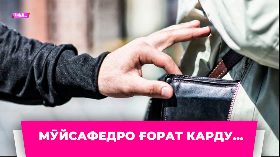 Номбурда, дар кӯчаи Гипроземи пойтахт бо роҳи пинҳонӣ аз ҷайби пирамарди 84-солаи сокини шаҳри Душанбе, 4 ҳазору 650 сомониро дузида, аз ҷойи ҳодиса ғайб задааст. Аз рӯи ин ҳодиса тафтишот идома дорад.