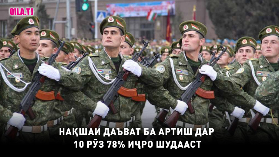 Вазорати мудофиаи Тоҷикистон иттилоъ дод, ки қариб 30 шаҳру ноҳия нақшаи даъвати тирамоҳӣ ба хидмати ҳарбиро пурра иҷро карда, дар умум, давоми 10 рӯз нақшаи даъват 78% иҷро шудааст.