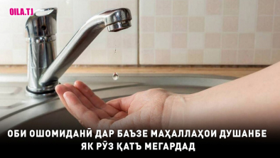 Аз соати 23:00-и рӯзи 16-уми октябр то соати 23:00-и рӯзи 17-уми октябр оби ошомиданӣ дар баъзе маҳаллаҳои шаҳри Душанбе қатъ карда мешавад.
