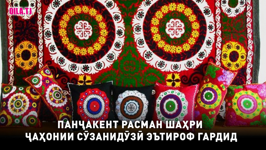 Шаҳри Панҷакент аз ҷониби «Шӯрои ҷаҳонии ҳунармандӣ» расман «Шаҳри ҷаҳонии ҳунарҳои дастӣ барои сӯзанидӯзӣ» эътироф гардид.