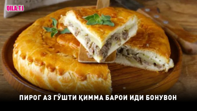 Кефирро бо сода омезиш дода, муддати 5 дақиқа нигоҳ доред. Намаку ордро илова карда, ними хамири омодашударо ба тобаи пешакӣ равғанмолидашуда резед. Қиммаи хомро ба рӯйи хамир тунук карда, боқимондаи хамирро аз рӯяш илова кунед. Пирогро муддати 40 дақиқа дар ҳарорати 170 дараҷа пазед. Қиммаро метавонед табъи дили худ дигар хел омода созед.