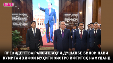 Имрӯз, 17-уми сентябр Президенти Ҷумҳурии Тоҷикистон, Пешвои миллат муҳтарам Эмомалӣ Раҳмон ва Раиси Маҷлиси миллии Маҷлиси Олии Ҷумҳурии Тоҷикистон, Раиси шаҳри Душанбе муҳтарам Рустами Эмомалӣ дар кӯчаи Шевченкои ноҳияи Исмоили Сомонии шаҳри Душанбе бинои нави Кумитаи ҳифзи муҳити зисти назди Ҳукумати Ҷумҳурии Тоҷикистонро мавриди истифода қарор доданд.