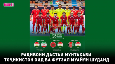 Дастаи мунтахаби Тоҷикистон оид ба футзал таҳти роҳбарии Пайрав Воҳидов дар Бозиҳои ҳамбастагии исломӣ-2025, ки аз 4 то 11-уми ноябр дар шаҳри Риёз баргузор мешавад, иштирок хоҳад кард.