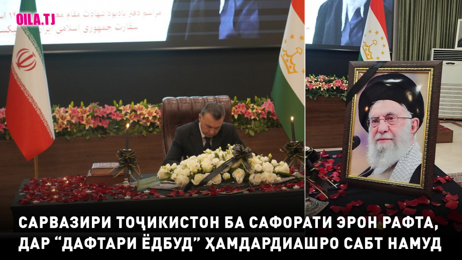 Ёдрас мешавем, ки дар пайи кушта шудани раҳбари олии Эрон Алии Хоманаӣ ва чанд тан аз мақомдорону сокинони ин кишвар бар асари ҳамлаҳои Амрикову Исроил Сафорати Эрон дар Душанбе "Дафтари ёдбуд" боз намудааст. Хоҳишмандон метавонанд ба сафорат ташриф оварда, изҳори ҳамдардии худро дар ин дафтар сабт намоянд.