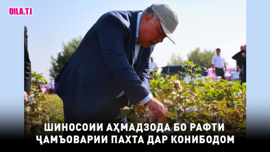Раиси вилояти Суғд Раҷаб Аҳмадзода дар шаҳри Конибодом бо рафти ҷамъоварии пахта шинос гардидааст.