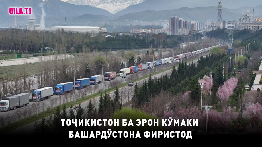 Корвони ёрии башардӯстонаи Тоҷикистон бо 110 мошини пурбор рӯзи 18 март ба ҷониби Ҷумҳурии Исломии Эрон раҳсипор гардид. Ёрии башардӯстонаи Тоҷикистон дар ҳаҷми 3610 тонна бор, аз ҷумла аз 45 тонна доруворӣ, маводи зиёди санитарию беҳдоштӣ, сару либоси кӯдакона, анвои гуногуни хӯрокворӣ, ашёи рӯзгор, рахти хоб, хаймаҳо, масолеҳи сохтмонӣ ва дигар лавозимот иборат мебошад.