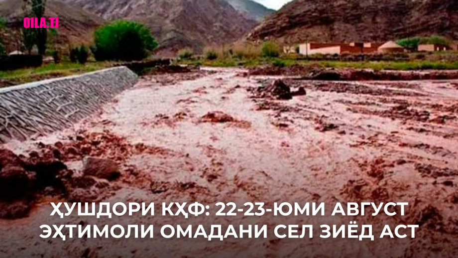 Кумитаи ҳолатҳои фавқулодда ва мудофиаи граждании назди Ҳукумати Ҷумҳурии Тоҷикистон бо истинод ба маълумоти Агентии обуҳавошиносии Ҷумҳурии Тоҷикистон хабар медиҳад, ки рӯзҳои 22-23-юми август дар дар як катор ноҳияҳои кӯҳӣ ва наздикӯҳии тобеи ҷумҳурӣ, вилояти Суғд ва дар ғарби Вилояти Мухтори Кӯҳистони Бадахшон омадани селҳо эҳтимол дорад.