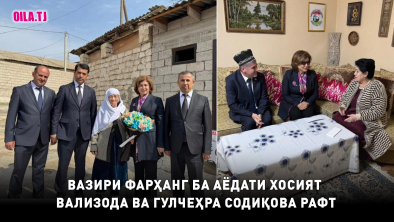 Матлубахон Сатториён, Вазири фарҳанги Тоҷикистон дар арафаи иди бонувон ва”Рӯзи модар” ба аёдати ду чеҳраи намоёни адабиёт ва санъати тоҷик, шоираи машҳури кӯлобӣ Хосият Вализода ва Ҳофизаи халқии Тоҷикистон Гулчеҳра Содиқова рафта, хотири эшонро шод гардониданд.